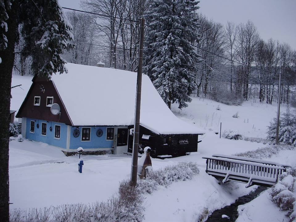 V zimě u nás najdete ideální podmínky jak pro běžecké lyžování, tak i pro milovníky sjezdovek. Upravovaná běžecká stopa vede podél hranice našeho pozemku.